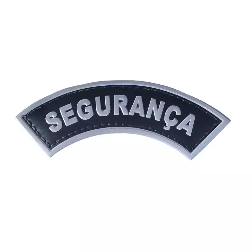 Patch Emborrachado SEGURANÇA,  preto e branco.Podendo ser usado em mochilas, bonés, bolsos modulares, camisetas, dentre outros que possuem fecho de contato fêmea.